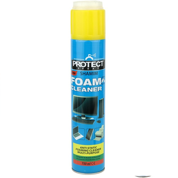 اسپری کف فرچه دار Protect 750ml مناسب برای نظافت و تمیز کردن انواع سطوح به ویژه وسایل و تجهیزات الکترونیکی مانند پرینتر،کیس و مانیتور و سطوح پلاستیکی، مبلمان منازل، سطوح داخل اتومبیل و