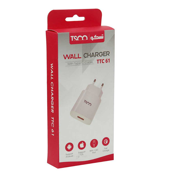 شارژر دیواری تسکو مدل TTC61 به همراه کابل تبدیل تایپ سی