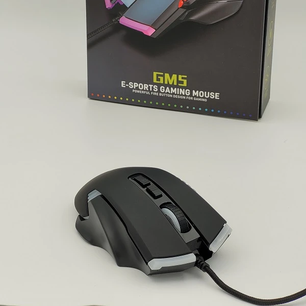 ماوس GM5 شرکت ایلون مدل جدیدی از ماوس گیمینگ هستش که این شرکت به بازار عرضه کرده، بهد از مدل های گیمینگ موفقی که این شرکت به بازار عرضه کرده GM5 میتواند سهم خوبی از بازار ماوس های گیمینگ را از آن خود کند. این مدل با قالب جدید و به روز خود همراه با نور نور پردازی فوق العاده هر گیمیری را جذب خود میکند. همچنین از سنسور قدرتمند اپتیکال با حساسیت تا 7200 DPI بهره میبرد که باعث سرعت و دقت فوق العاده در بازی می شود. GM5 مشابه مدل های قبلی این برند از کابل بلند 1.8 متری با روکش کنفی بهره میبرد تا عمر زیادی داشته باشد. همچین قابلیت تنظیم حساسیت 1200/1600/2400/3200/4800/7200DPI را دارد. GM5 یک افکت نوری فوق العادهی دارد که قابلیت شخصی سازی دارد و بدنه ماوس جیر هستش که از عرق کردن دست راحت می شوید. این موس 8 کلید دارد که در نوع خود کامل هستش با دکمه ایی که سمت چپ ماوس هستش میتوان یک میانبر فوق العاده کارامد در زمان بازی داشته باشد و با برنامه ی مخصوصی که از سایت شرکت مرتبط میتوانید دانلود کنید ،تمام نیاز های یک گیمر را براورده میکند. با برنامه مخصوص خودش میتوانید ماوس را کاملا شخصی سازی کنید و افکت های نوری را عوض کنید. طول عمر کلید های این ماوس بیش از 3 میلیون کلیک می باشد
